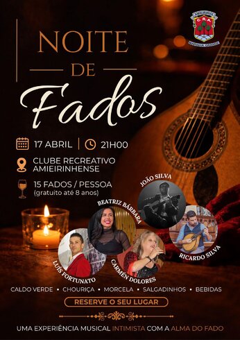 🎶 NOITE DE FADOS SOLIDÁRIA 🎶 Os Bombeiros Voluntários de Vieira de Leiria convidam para uma noite inesquecível dedicada ao Fado e à solidariedade! 📅 28 de março ⏰ 21h00 📍 Colégio de Santa Doroteia – Lisboa (Avenida Marechal Craveiro Lopes, n.º ...28 Mar -