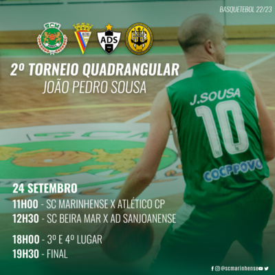 É já sábado, 24 de Setembro que o Sporting Clube Marinhense recebe as equipas do Atlético Clube Portugal, SC Beira Mar e da AD Sanjoanense para a 2ª edição do torneio de Basquetebol.