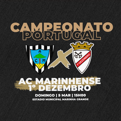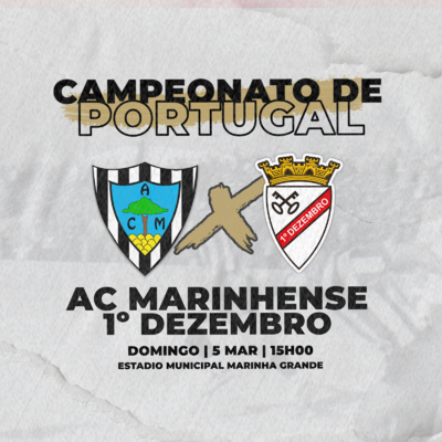 No próximo domingo, dia 05 de março de 2023, decorre o jogo do Atlético Clube (AC) Marinhense vs 1º Dezembro, a realizar pelas 15h00, no Estádio Municipal da Marinha Grande.