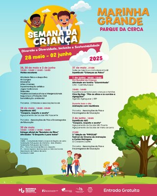 O Município da Marinha Grande promove, entre os dias 28 de maio e 2 de junho, no Parque da Cerca, a Semana da Criança 2025, uma celebração dedicada aos mais pequenos, sob o lema “Diversão e Diversidade, Inclusão e Sustentabilidade”, cuja participação é gratuita.