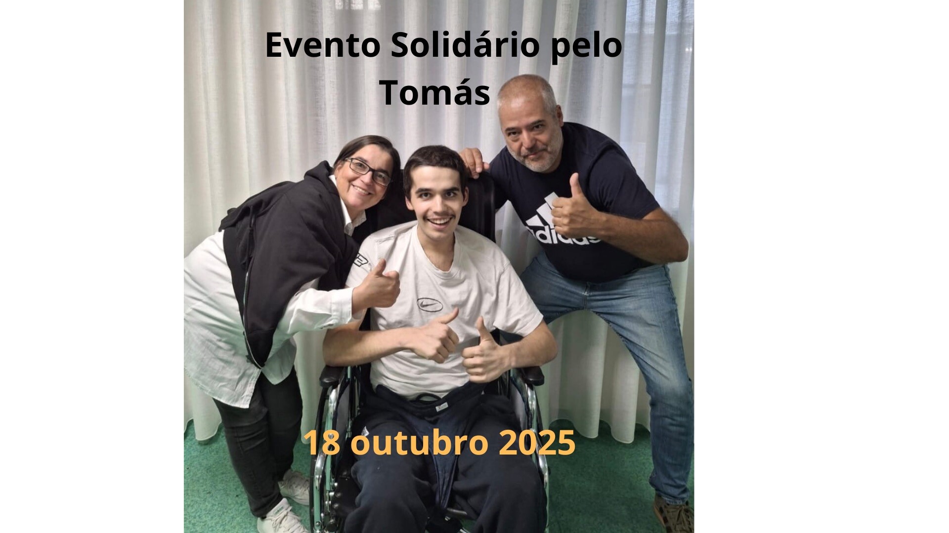 Tudo o que for angariado neste evento reverterá 100% a favor do Tomás e das suas despesas de recuperação.