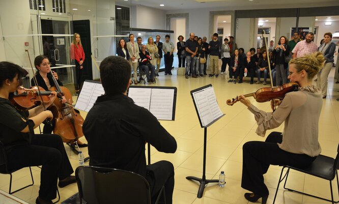 As comemorações do Dia Internacional dos Museus começaram com a música do Quarteto D. Dinis do Orfeão de Leiria que, logo após a abertura da exposição temporária atuou no interior do Palácio Stephens, levando a harmonia da música clássica a todos os pisos de exposição do edifício.