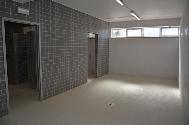 Os balneários estão a ser reformulados, incluindo paredes, pavimentos e portas de acesso e de compartimentação; são renovados os equipamentos sanitários e os bancos; e é instalado um sistema de ventilação e extração de ar.