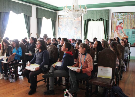 A Vereadora da Educação da Câmara Municipal da Marinha Grande, Célia Guerra, recebeu na passada quarta-feira, 13 de fevereiro, no Salão Nobre dos Paços do Concelho, alunos das Escolas Básicas do Engenho e Guilherme Stephens, que participaram no projeto “À Descoberta das 4 Cidades”.