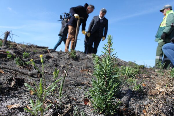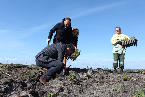 O Secretário de Estado das Florestas e do Desenvolvimento Rural, Miguel Freitas, a presidente da Câmara Municipal da Marinha Grande, Cidália Ferreira, e o presidente do Instituto da Conservação da Natureza e das Florestas, Rogério Rodrigues, deslocaram-se ao Talhão 60 do Pinhal do Rei, esta sexta-feira, 8 de março, para uma ação de florestação e apresentação do Plano de Investimentos Matas Públicas do Centro e Litoral.