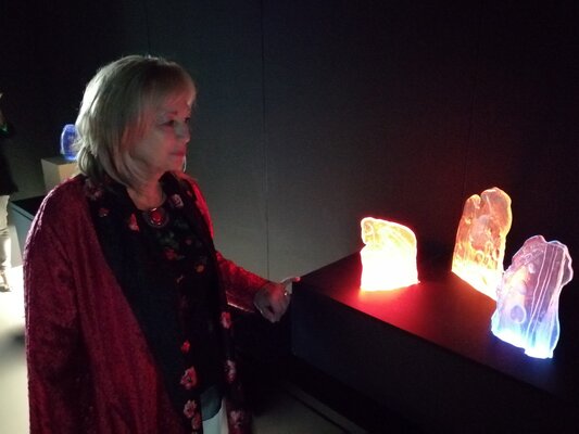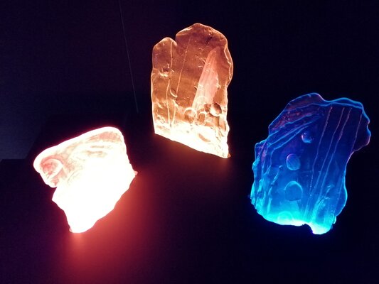 Dividida em duas temáticas, a exposição “Transparência ecológica - Do trópico ao glaciar” apresenta-nos obras inspiradas nos corais, realizadas em vidro luminescente, desprovidas de cor que, quando expostas à luz ultravioleta, ganham vida através das suas cores luminosas. No espaço expositivo há, inclusivé, uma sala escura com luzes ultravioletas, onde é possível observar o efeito resultante desta conjugação.