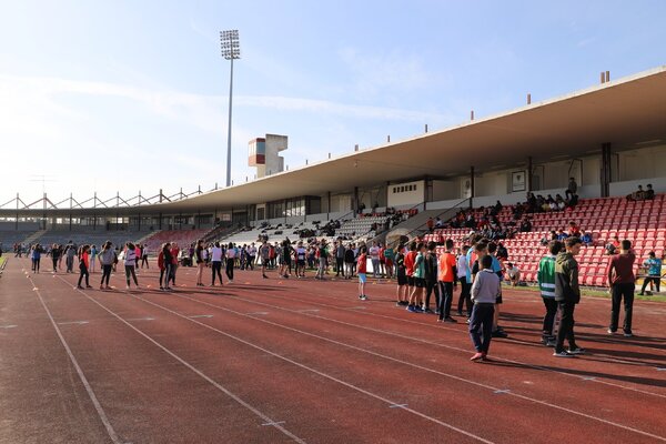 O Estádio Municipal da Marinha Grande está a receber cerca de 460 alunos do Agrupamento de Escolas Marinha Grande Poente, na manhã desta quinta-feira, 6 de fevereiro, para participarem no campeonato “Megas”.