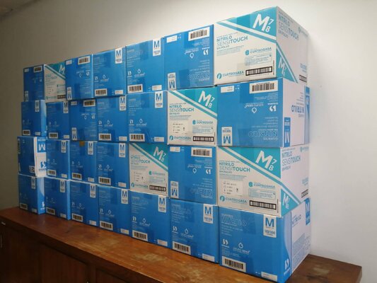 Até hoje, foram entregues 39500 luvas, 1200 máscaras cirúrgicas, 200 batas, 100 óculos, 231 viseiras e 1700 toucas.