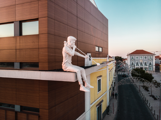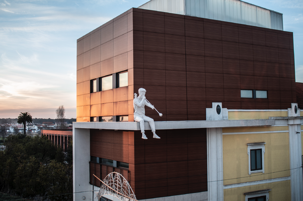 A terceira e última intervenção artística do Festival “Marinha Grande, SOPRO: ARTE PÚBLICA”, promovido pela Câmara Municipal da Marinha Grande e pela Associação Riscas Vadias, que também assume a curadoria da iniciativa, foi instalada na pala do Teatro Stephens, na passada sexta-feira, dia 20 de novembro.