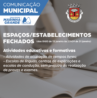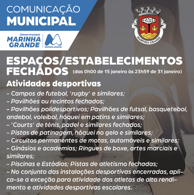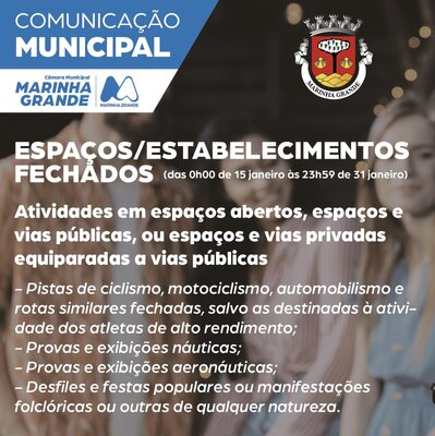 O decreto 3-A/2021 da Presidência do Conselho de Ministros que regulamenta o novo estado de emergência devido à pandemia da covid-19, em vigor entre as 00:00 de dia 15 de janeiro e as 23:59 de 30 de janeiro, determina o encerramento de espaços e estabelecimentos comerciais.