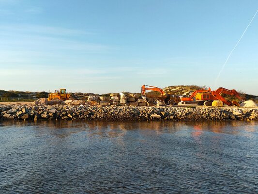 Está a decorrer a empreitada de “Reforço e Reabilitação dos Molhes a Sul e a Norte da Foz do Rio Lis”, na Praia da Vieira, num investimento de cerca de 1,5 milhões de euros, com o objetivo de aumentar a proteção marítima, minimizando os galgamentos oceânicos.