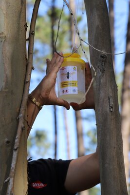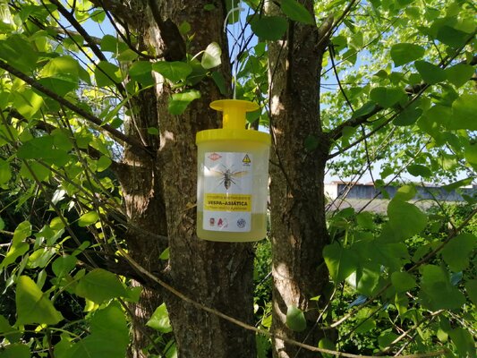 Estão a ser colocadas 200 armadilhas seletivas para capturar a vespa asiática, que estão devidamente identificadas com um rótulo e que estão a ser distribuídas por todo o concelho da Marinha Grande.