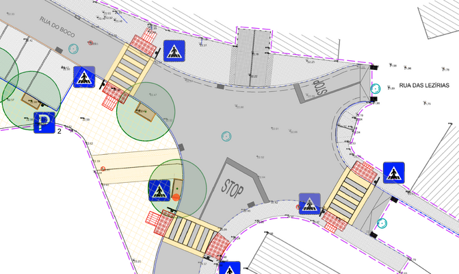 Em termos de acessibilidades, as passadeiras serão em calçada grossa de granito e calcário branca e será colocado pavimento tátil e direcional, com vista a garantir a sua leitura e adequada utilização, de forma autónoma, por pessoas com mobilidade condicionada.