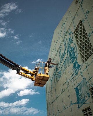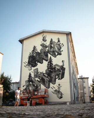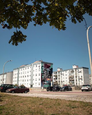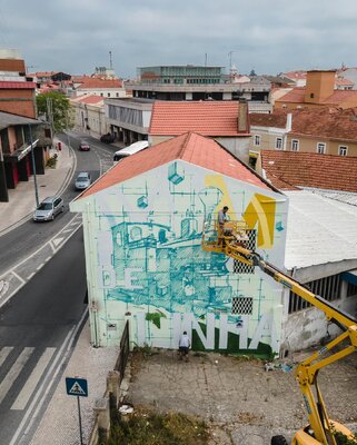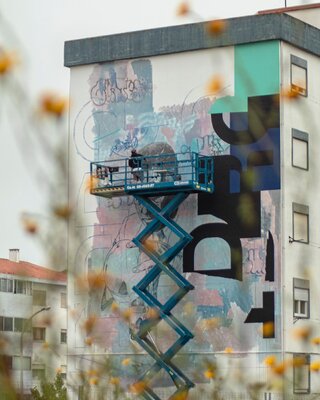Estão a ser realizadas quatro pinturas murais em paredes/fachadas de média/grande dimensão, por artistas de renome internacional: