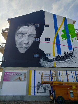 A Câmara Municipal da Marinha Grande realizou mais um trabalho de arte urbana, desta vez na parede de um prédio, situado na Avenida dos Pescadores, na Praia da Vieira, da autoria do artista Bruno Gaspar.