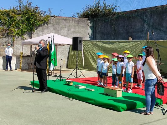 Os jovens músicos dirigidos pelo maestro Élio Frois fizeram a atuação de estreia, perante uma plateia cheia e sob o rigoroso respeito pelas regras da Direção-Geral de Saúde.