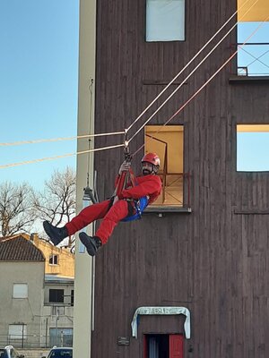 As duas ‘vítimas’ desta ocorrência serão retiradas recorrendo a técnicas de Maca de Resgate e Triângulo de Evacuação. A atividade pretende promover o treino operacional (particularmente ao nível tático e de manobra), exercitar os procedimentos operacionais de emergência, verificar dificuldades e constrangimentos no salvamento de vítimas em edifícios em grande altura na área de atuação dos Bombeiros da Marinha Grande.