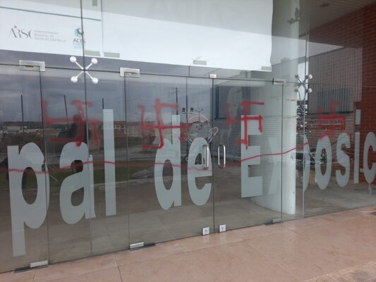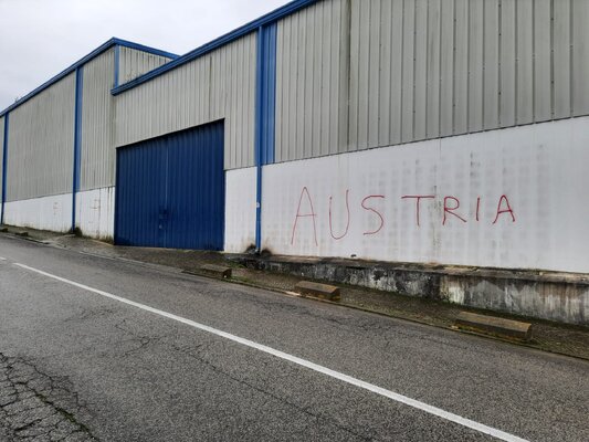 Foram inscritas cruzes suásticas na fachada do Centro de Vacinação e a palavra "Áustria” numa das paredes do edifício.