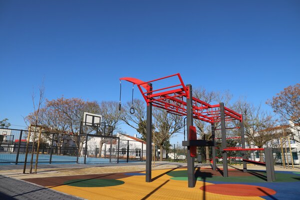 Foi colocada uma estrutura multifuncional para realização de exercício físico numa área com piso de borracha sintética. Esta valência foi conciliada com um novo espaço de jogo e recreio, equipado com equipamentos atrativos e destinados a uma faixa etária abrangente.