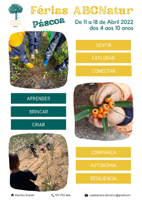 Nestas férias da Páscoa vamos descobrir a magia da floresta, viver juntos muitas aventuras, ser exploradores e investigadores, vamos construir cabanas e imaginar com paus e pinhas, vamos experimentar novas ferramentas, vamos procurar ovos mágicos, dormir a sesta em camas de rede, ouvir os passarinhos, observar os esquilos, vamos ouvir histórias que nos inspiram a mais aventuras, vamos criar memórias inesquecíveis.