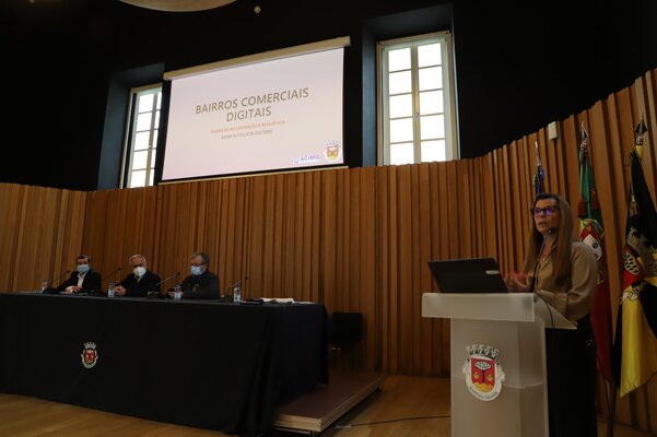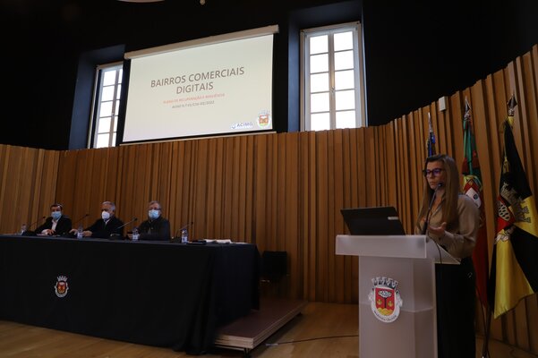 As explicações acerca do programa “Bairros Comerciais Digitais” foram asseguradas por Catarina Morgado, da Câmara Municipal; e por Filipe cardal, da ACIMG.