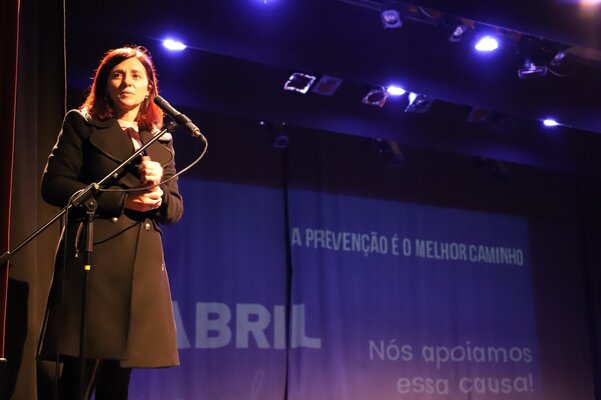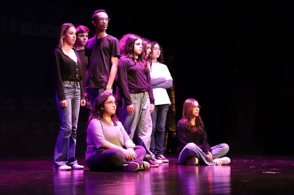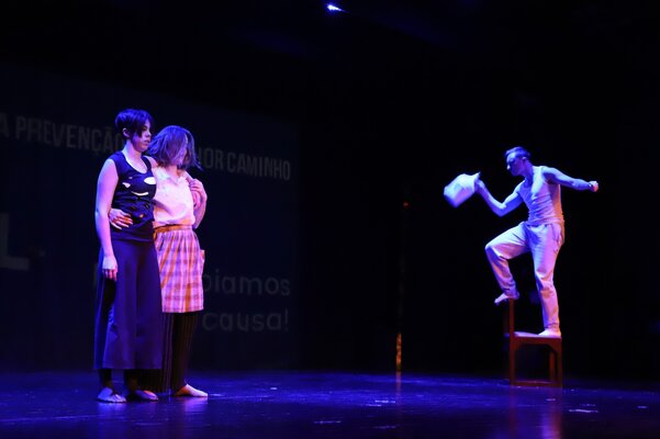 No espetáculo “Abril Azul”, foram apresentadas performances de dança e teatro, pelos alunos do SOM, que evocaram os sinais de alerta relativos à violência nas famílias e no namoro.