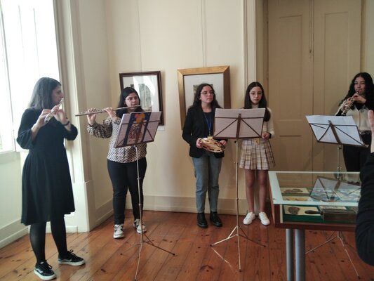 Depois da apresentação de cada salas e do destaque de algumas das suas peças, pela técnica do Museu, Cátia Cavaco, os alunos tocaram as peças musicais que tinham estudado e o maestro Élio Fróis descreveu o trabalho que tinha sido feito, apresentando professores e alunos em cada grupo instrumental.