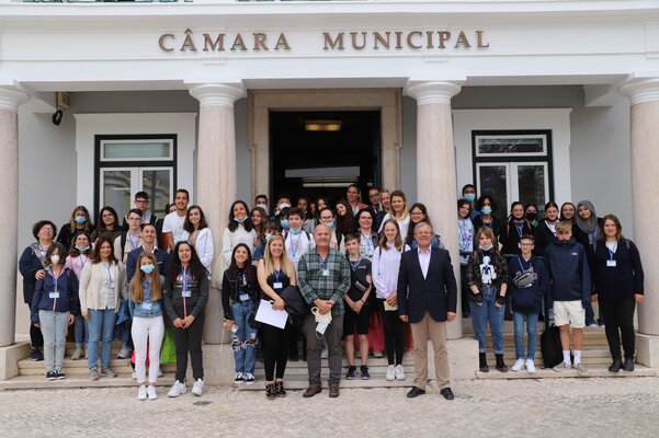 À tarde, os autarcas receberam um grupo de 40 alunos e 10 professores, que participam no projeto Erasmus + subordinado ao tema “ Revolution of foreign language teaching, the combination of old-school and innovative ICT methods ”, provenientes da Alemanha, Hungria e Itália, que estão em permuta educativa e cultural com o Agrupamento de Escolas Marinha Grande Nascente.