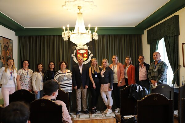O presidente da Câmara Municipal da Marinha Grande, Aurélio Ferreira, e a vereadora da educação, Ana Alves Monteiro, receberam na passada segunda-feira, 30 de maio, no Salão Nobre dos Paços do concelho, dois grupos de participantes em projetos Erasmus, que se encontram a realizar intercâmbios com escolas do concelho.
