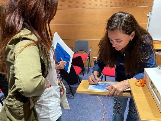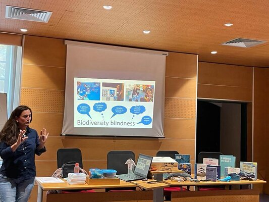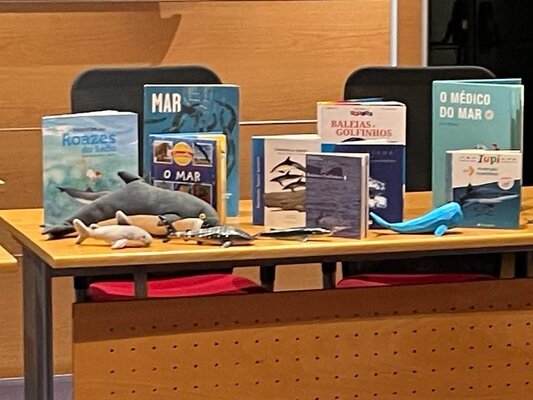 A formadora Sofia Quaresma, da Ordem dos Biólogos (Obio), abordou o tema dos cetáceos, através do livro de autora “Farol, um golfinho em apuros”, entre outras obras alusivas ao tema, recorrendo também a atividades práticas que formaram e sensibilizaram para a empatia com a Natureza.