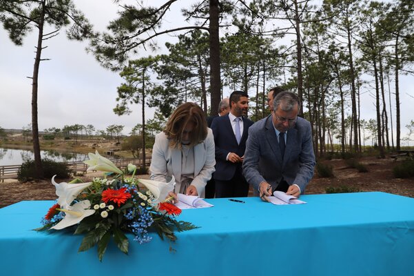 O presidente da Câmara, Aurélio Ferreira, assinou o acordo em representação do Município da Marinha Grande, relativo ao Talhão nº 145 da Mata Nacional de Leiria (Pinhal do Rei), numa área de 28 hectares.