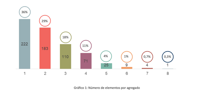Relativamente à caracterização dos 625 agregados, verifica-se que a maioria corresponde a agregados pequenos, uma grande parte, 222, são compostos por apenas uma pessoa, sendo estas situações, por vezes, preocupantes por se tratar frequentemente de pessoas isoladas, mais velhas e sem retaguarda familiar. Por outro lado, as famílias mais alargadas, com pelo menos cinco elementos cada, têm menos expressão, ainda assim há a considerar 25 agregados com cinco elementos, nove com seis, quatro agregados contam com sete elementos e um agregado com oito pessoas.