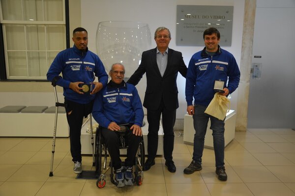 Aurélio Ferreira felicitou os atletas Iderlino Gomes e Marco Francisco e o assistente da seleção nacional e vice-presidente da delegação de Leiria da Associação Portuguesa de Deficientes (APD), Manuel Sousa, pelo título alcançado no passado mês de novembro, na primeira edição do Campeonato do Mundo e da Europa de andebol em cadeira de rodas, frente aos Países Baixos.