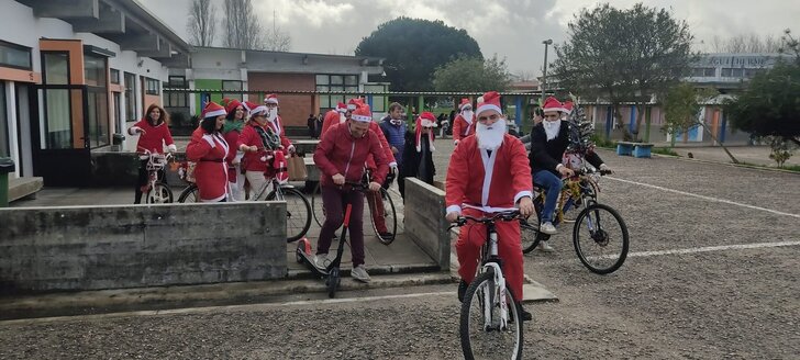 Os elementos desta Associação, juntamente com outros encarregados de educação, deslocaram-se à escola de bicicleta, vestidos de Pai Natal, para entregar a cada criança um pai Natal de Chocolate, acompanhados de muita Música e Alegria.