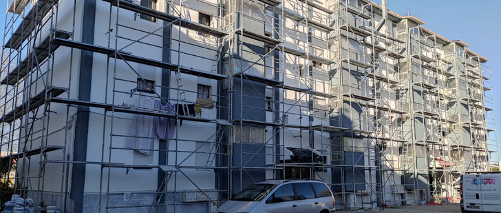 Está a ser feita a remoção integral de revestimento original das coberturas dos prédios, para substituição por painel e chapa dupla metálica. Está também a ser colocado isolamento térmico reforçado no teto e as fachadas dos edifícios estão a ser alvo de pintura.