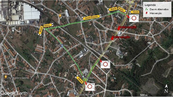 O desvio à circulação rodoviária fica garantido pela Rua das Rosas Silvestres e a Rua 10 de junho.