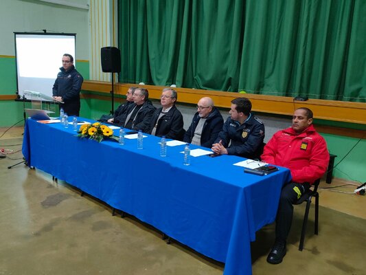 Na noite de terça-feira, 28 de fevereiro, no Clube Desportivo Moitense, decorreu a sessão pública de apresentação desta simulação, que contou com a presença do presidente da Câmara Municipal da Marinha Grande, Aurélio Ferreira; do vereador da proteção civil, António Fragoso; do presidente da Junta de Freguesia da Moita, Franclin Ventura; do comandante sub-regional da Região de Leiria da Autoridade Nacional de Emergência e Proteção Civil, Carlos Guerra; do comissário da PSP da Marinha Grande, Fábio Camelo; do Comandante dos Bombeiros Voluntários da Marinha Grande, Ismael Osman; do coordenador municipal de Proteção Civil, Pedro Borges; dos técnicos do Serviço Municipal de Proteção Civil; entre outros participantes.