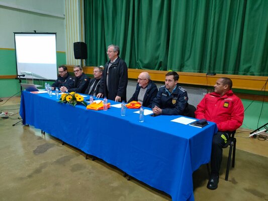 Para além das explicações do exercício, foram apresentados o Oficial de Segurança Local, Pedro Cunha, e os voluntários do programa, com entrega de equipamento de proteção individual.