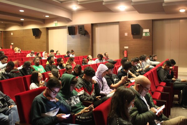 Assistiram à sessão, alunos da Escola Profissional e Artística da Marinha Grande (EPAMG) e do Centro de Formação Profissional da Indústria Metalúrgica e Metalomecânica (CENFIM).