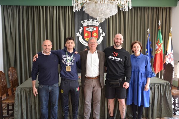 O atleta marinhense Joel Colaço e o seu treinador Joel Cruz, da modalidade de Muay Thai, foram recebidos no passado dia 4 de abril, no Salão Nobre, pelo presidente da Câmara Municipal da Marinha Grande, Aurélio Ferreira, e pela vereadora do desporto, Ana Alves Monteiro.