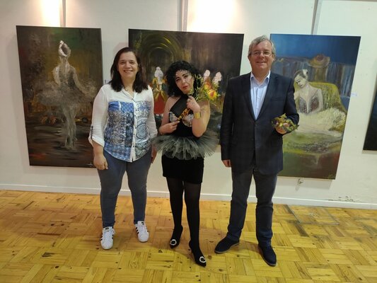 Estão patentes 35 obras, que retratam o ballet, uma das paixões da pintora, a propósito da comemoração do Dia Mundial da Dança, que se assinala a 29 de abril.