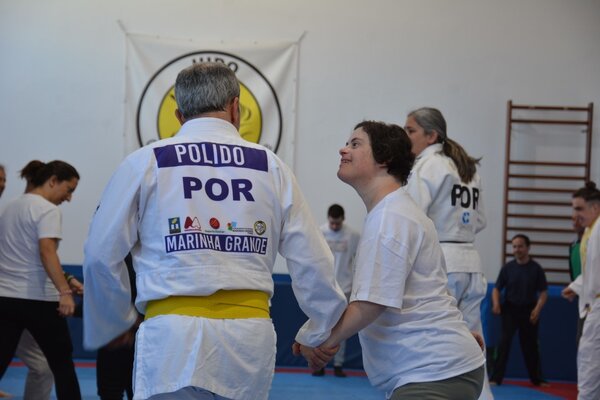 Trata-se de uma parceria da APPACDM - Associação Portuguesa de Pais e Amigos do Cidadão Deficiente Mental da Marinha Grande com o clube de Judo, inserida no calendário de atividades para 2023 dos Intercentros Zona Centro, que foi presenciada pela vereadora do desporto da Câmara Municipal, Ana Alves Monteiro; pela presidente da APPACDM, Ivone Henriques; e técnicos das várias instituições envolvidas.