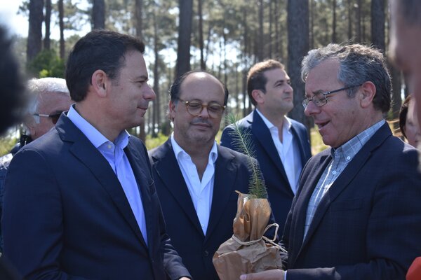 Aurélio Ferreira e Luís Montenegro caminharam, ainda, juntos por um troço da mata, numa visita que culminou com a oferta de um pinheiro por parte do PSD, num gesto simbólico para com o autarca marinhense.