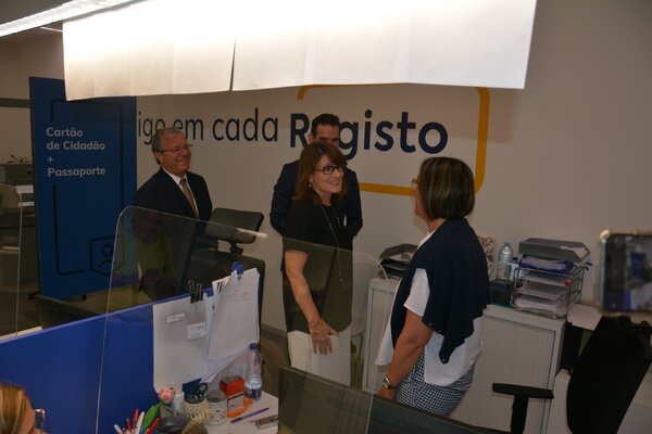 A visita contou também com a presença do presidente da Câmara Municipal da Marinha Grande, Aurélio Ferreira; do secretário de Estado da Justiça, Pedro Tavares; e da presidente do Instituto de Registos e Notariado (IRN), Filomena Rosa.