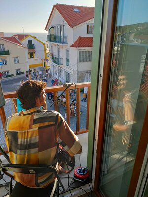 A varanda do Edifício Cosmos Azul e Mar, em São Pedro de Moel, foi palco da iniciativa "Música à Varanda", com organização do Município da Marinha Grande.
