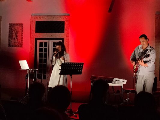 Na noite deste sábado, 5 de agosto, o pátio da Casa-Museu Afonso Lopes Vieira, em São Pedro de Moel, acolheu o concerto de Raquel Ralha e Pedro Renato.