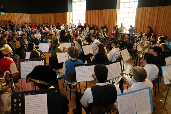A atuação da Filarmónica teve a participação da Sociedade Filarmónica Recreativa Pataiense (Pataias) e de alunos externos às duas bandas, provenientes de Porto de Mós, Guia e Maceira, devido à realização do estágio de banda que tem ocorrido ao longo do mês de novembro. Juntaram-se, também, os alunos das classes infantis de ambos os grupos, proporcionando um concerto com cerca de 70 elementos, trajados de acordo com muitos dos personagens da Disney.