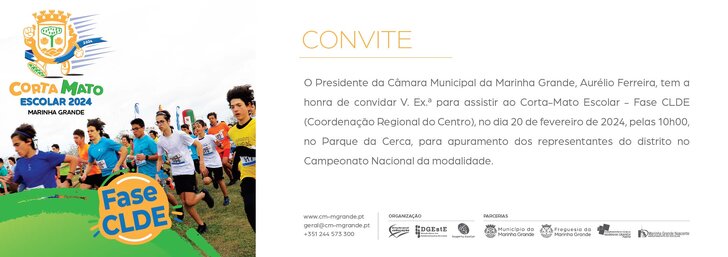 Cerca de 1200 atletas vão participar no Corta-Mato Escolar - Fase CLDE (Coordenação Regional do Centro), no dia 20 de fevereiro, pelas 10h00, no Parque da Cerca, na Marinha Grande, para apuramento dos representantes do distrito no Campeonato Nacional da modalidade.