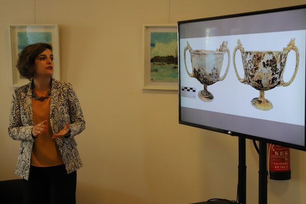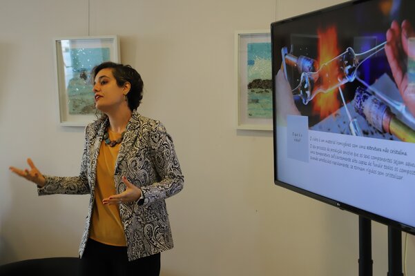 A oradora esclareceu que a conservação e restauro de vidro é um trabalho altamente especializado, que tem como objetivo fundamental devolver às peças estabilidade química e física, de forma a que estas possam ser apreciadas pelo público em geral e de forma a promover o seu estudo, contribuindo para a valorização do vidro e da sua história em Portugal e além fronteiras.