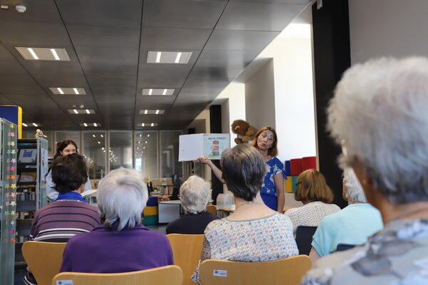 Esta terça-feira, dia 16 de julho, ocorreu uma sessão de leitura, na Biblioteca Municipal da Marinha Grande, destinada a idosos do Centro Social e Paroquial de Vieira de Leiria.